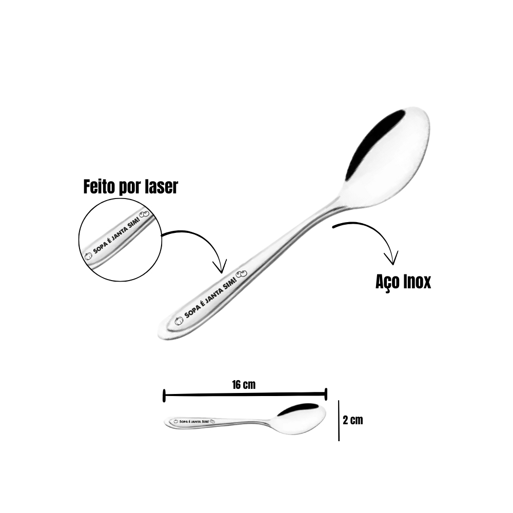 O conjunto com 6 Colheres Americanas “Sopa é Janta Sim” traz funcionalidade com um toque de humor. Feitas em material resistente e de fácil limpeza, são perfeitas para o dia a dia, trazendo leveza para a mesa na hora da refeição.