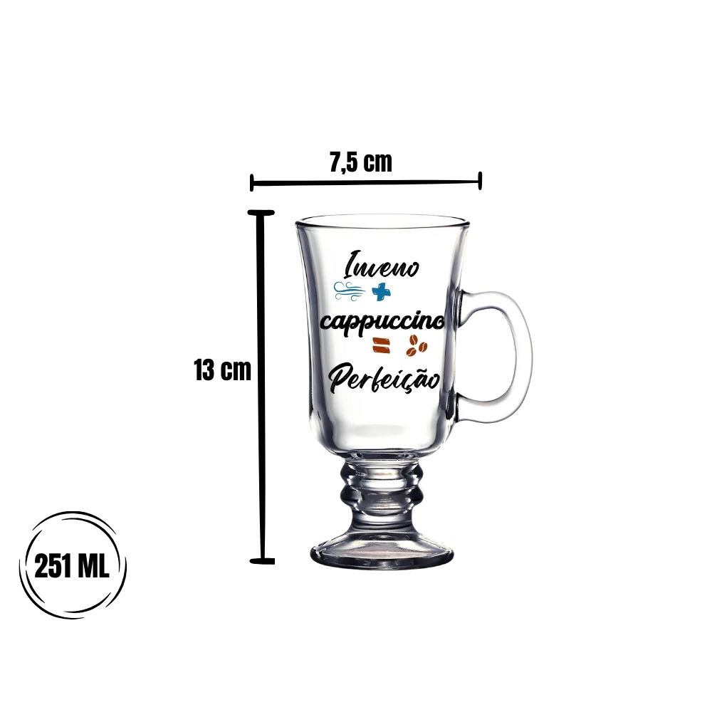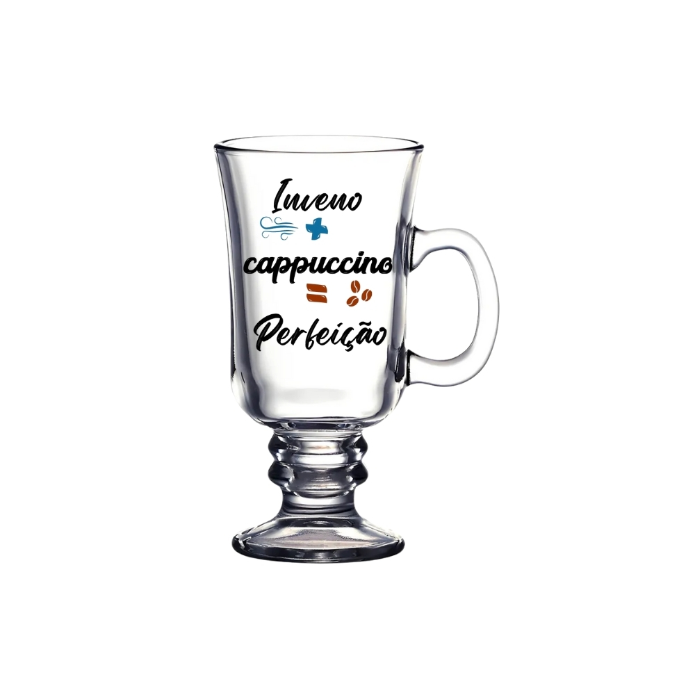 A Taça Irish Coffee Libbey 251ml “Inverno + Cappuccino = Perfeição” foi pensada para acompanhar seus momentos de conforto. Feita em vidro de alta qualidade, ela traz elegância e resistência em uma peça perfeita para bebidas quentes. Seu tamanho maior acomoda cappuccinos cremosos com espuma caprichada, enquanto a estampa temática torna a experiência ainda mais charmosa.